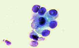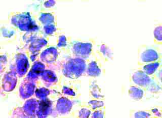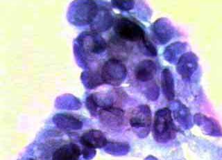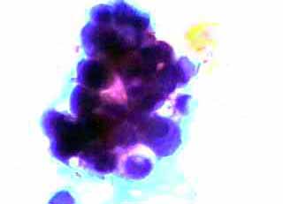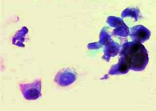 Κατόπιν αυτού, παρακέντηση λεπτής βελόνης κάτω από υπερηχογραφικό έλεγχο και άμεση χρώση παρασκευάσματος κατά Papanicolaou. Κυτταρολογικώς χαρακτηριστικές εικόνες νεοπλασίας.