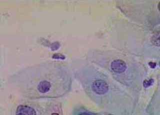 Στην δοκιμασία οξικού οξέως και στην δοκιμασία Lugol, αρνητική περιοχή, τόσο στο πρόσθιο, όσο και στο οπίσθιο χείλος του τραχήλου, σε ακτίνα 3-4 χιλ. και πλάτος περίπου 5 χιλ., με εικόνα διακριτικού επίπεδου μωσαϊκού.