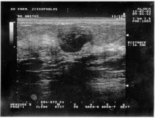 Oι τελευταίες 4 απεικονίσεις έγιναν με ειδικό για μαστό ηχοβολέα linear, εναλλασσομένης συχνότητος 7,5-10ΜΗΖ.