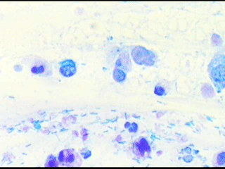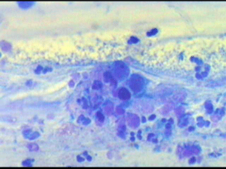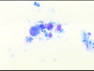 Κυτταρολογικό επίχρισμα που ελήφθη με συσκευή Pap-Cone. Άμεση χρώση με υδατικό διάλυμα 0,25% bleu de methylen.