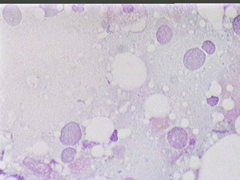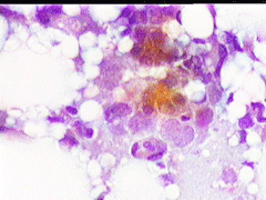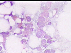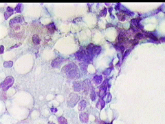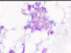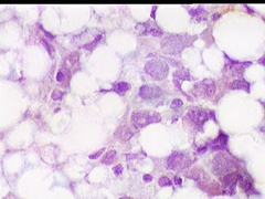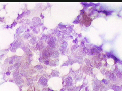 Η παρακέντηση λεπτής βελόνης επιβεβαιώνει τη διάγνωση συμπαγούς μορφώματος. Το ελάχιστο υλικό επιστρώνεται σε αντικειμενοφόρο πλάκα, στεγνώνει στον αέρα με και βάφεται κατά Papanicolaou.