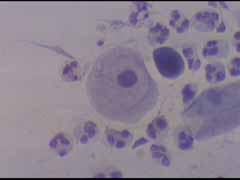 Ενα κυτταρα διαμεσου στοιβάδας και δυο παραβασικά κύτταρα, Το ενα εξ αυτών με μορφολογία που θυμίζει αδενικό κύτταρο Μεγεθ. 10Χ40