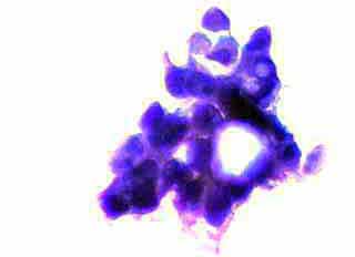 Κατόπιν αυτού, παρακέντηση λεπτής βελόνης κάτω από υπερηχογραφικό έλεγχο και άμεση χρώση παρασκευάσματος κατά Papanicolaou. Κυτταρολογικώς χαρακτηριστικές εικόνες νεοπλασίας.