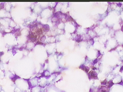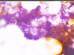Η παρακέντηση λεπτής βελόνης επιβεβαιώνει τη διάγνωση συμπαγούς μορφώματος. Το ελάχιστο υλικό επιστρώνεται σε αντικειμενοφόρο πλάκα, στεγνώνει στον αέρα με και βάφεται κατά Papanicolaou.
