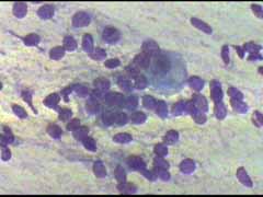 Ενα κυτταρα διαμεσου στοιβάδας και δυο παραβασικά κύτταρα, Το ενα εξ αυτών με μορφολογία που θυμίζει αδενικό κύτταρο Μεγεθ. 10Χ40