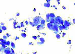 Aσθενής 45 ετών, με γνωστή παρουσία πολλαπλών κύστεων και στους δύο μαστούς εδώ και πολλά χρόνια.. Επώδυνη κύστη διαμέτρου 4 εκ. στον αριστερό μαστό. Κάτω από υπερηχογραφικό έλεγχο παρακέντηση και αφαίρεση περίπου 20 κ. εκ. κιτρινωπού υγρού.